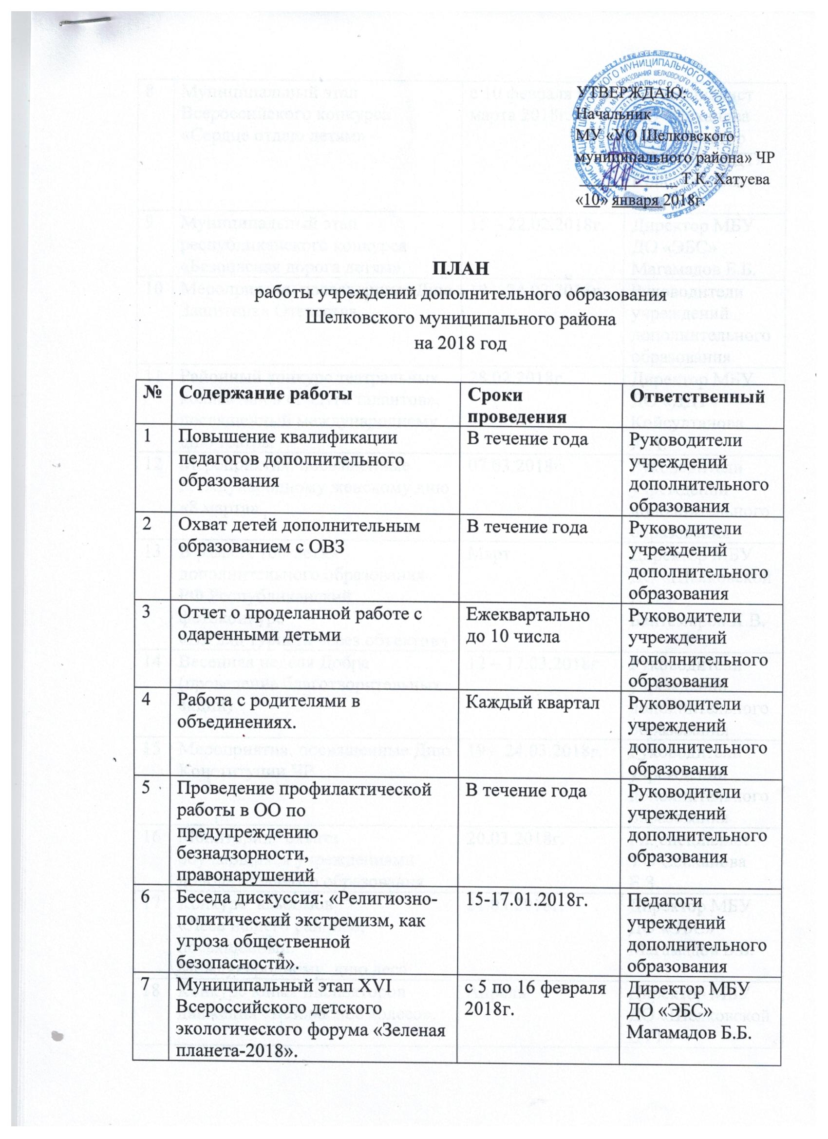 План МУ "Управление образования Шелковского муниципального района" по обеспечению муниципальной системы образования педагогическими кадрами на 2018-2019 учебный год