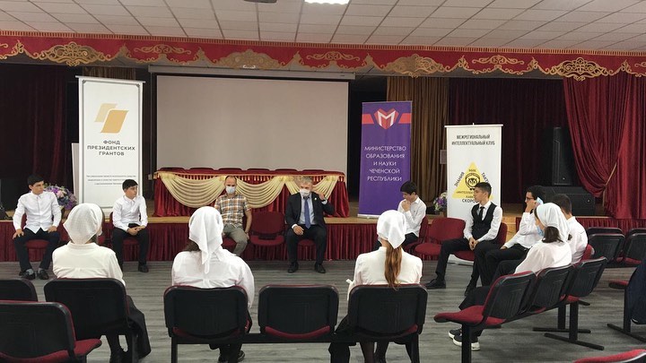 08.09.2020Председателем межрегиональной ассоциации общественных объединений "Национальный совет молодежных и детских объединений " М.Дунаевым и директором межрегионального интеллектуального клуба"Интеллектуальный Кавказ", зам.директором Национального совета детских и молодежных организаций ЧР С-А. Музаевым с учащимися нашей школы 9-11 классов была проведена игра в рамках реализации проекта "Игры разумов"