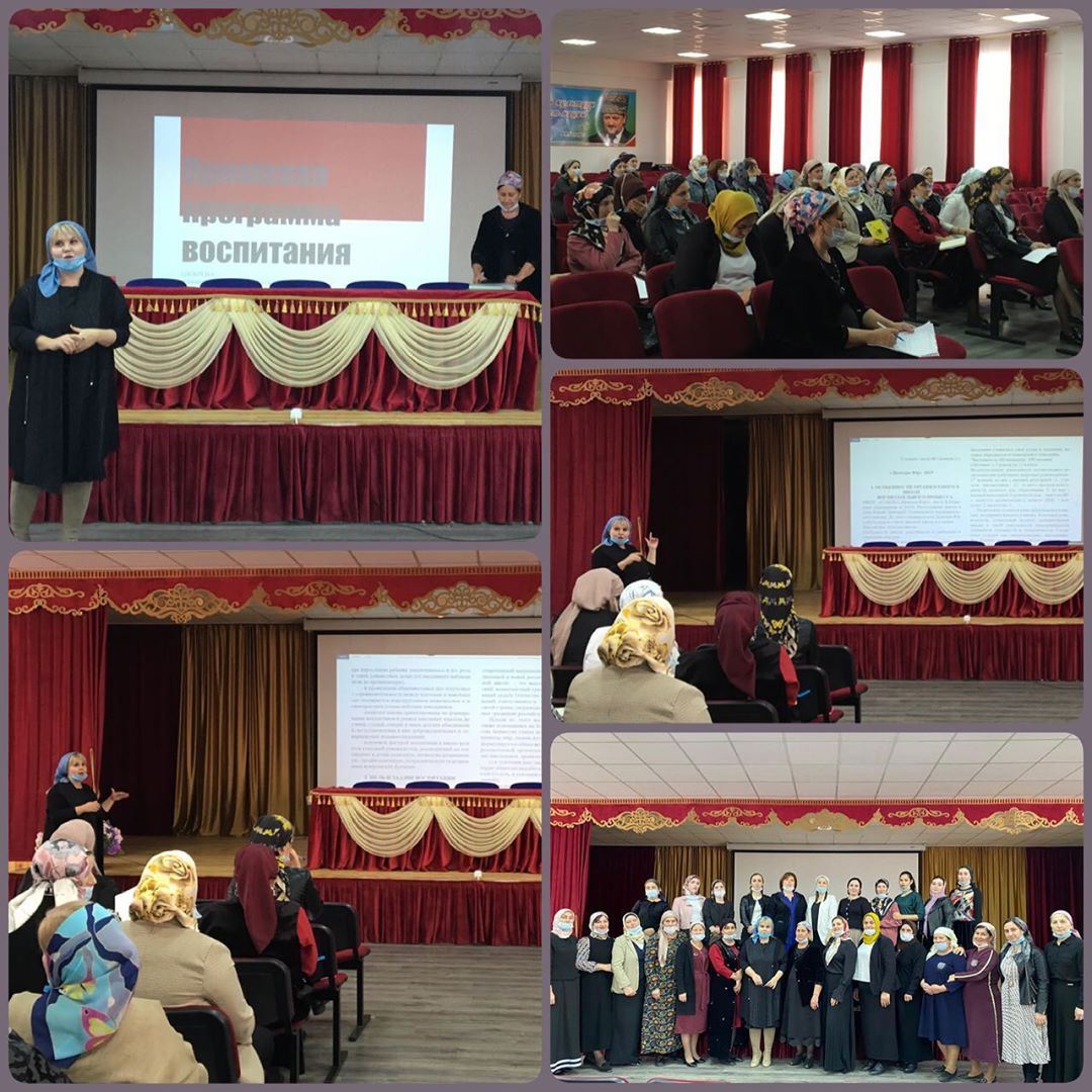 31.10.2020Дорогие друзья! Сегодня в МБОУ «Шелковская СОШ4 им. А-Х.Кадырова» заместителем директора по ВР МБОУ «СОШ2 с.Центора-Юрт» им.А-Х.Кадырова Симоновой Татьяной Александровной совместно со специалистом отдела образования Шелковского муниципального района Элтаевой Нурой Азимовной с заместителями директора по ВР и педагогами-организаторами ОУ Шелковского муниципального района был проведен семинар по новой программе воспитания.