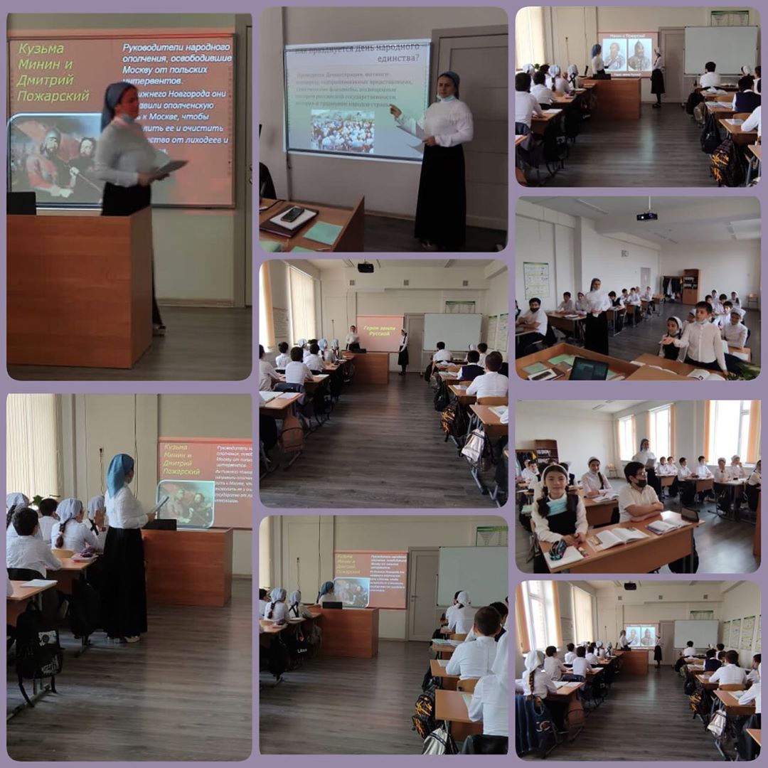 Дорогие друзья! Классным руководителем 6д класса Алиевой Хедой Адамовной были проведены классные часы на темы: «О героях народного ополчения», «В единстве наша сила».