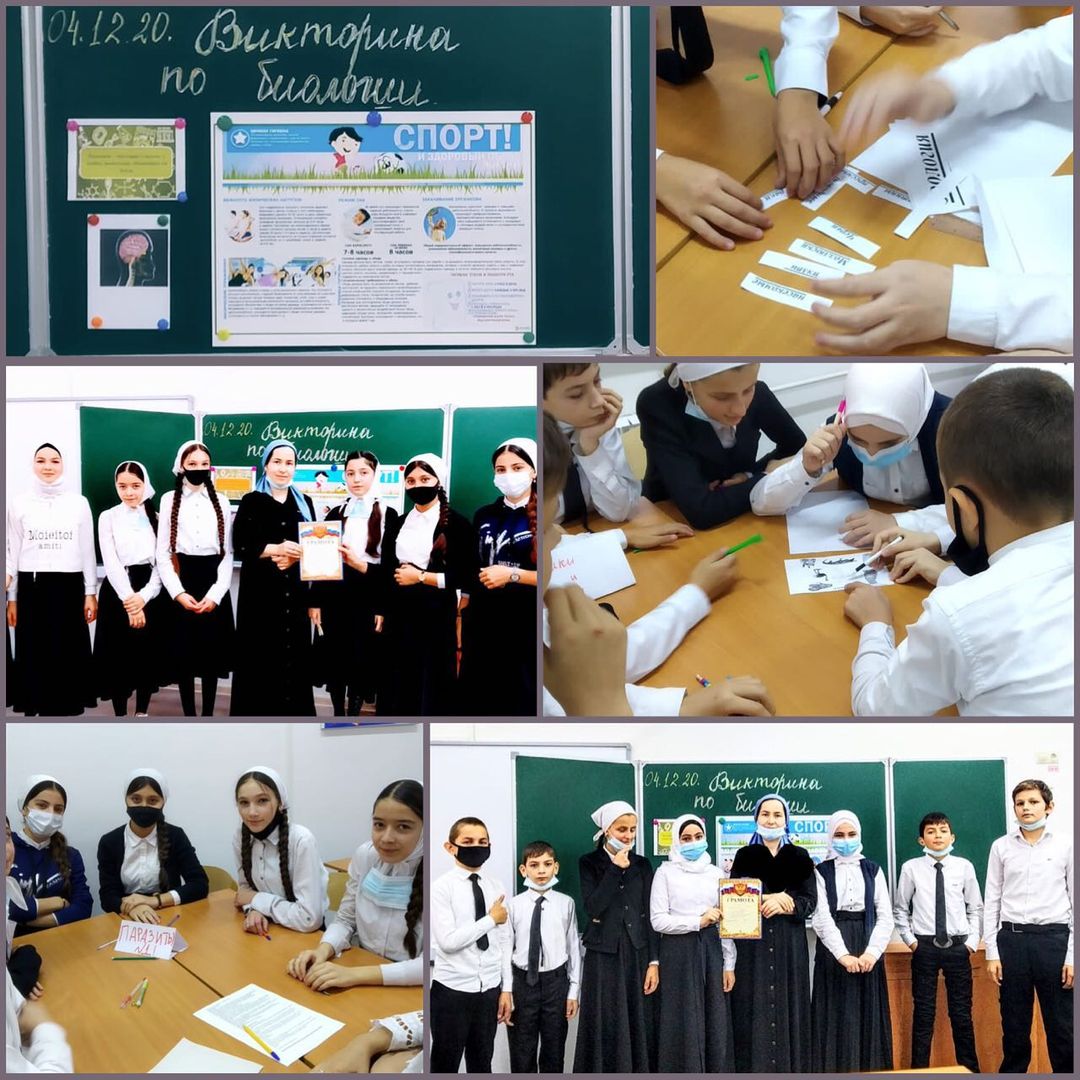 04.12.2020Дорогие друзья! Сегодня, в рамках предметной недели географии, биологии и химии, учителем биологии Катабовой Миланой Майрисултановной среди учащихся 7-х классов было проведено внеклассное мероприятие«Викторина по биологии», с целью побуждения дальнейшего интереса к изучению биологии.Проводя подобные мероприятия, можно ещё больше привлечь внимание и интересы учащихся.
