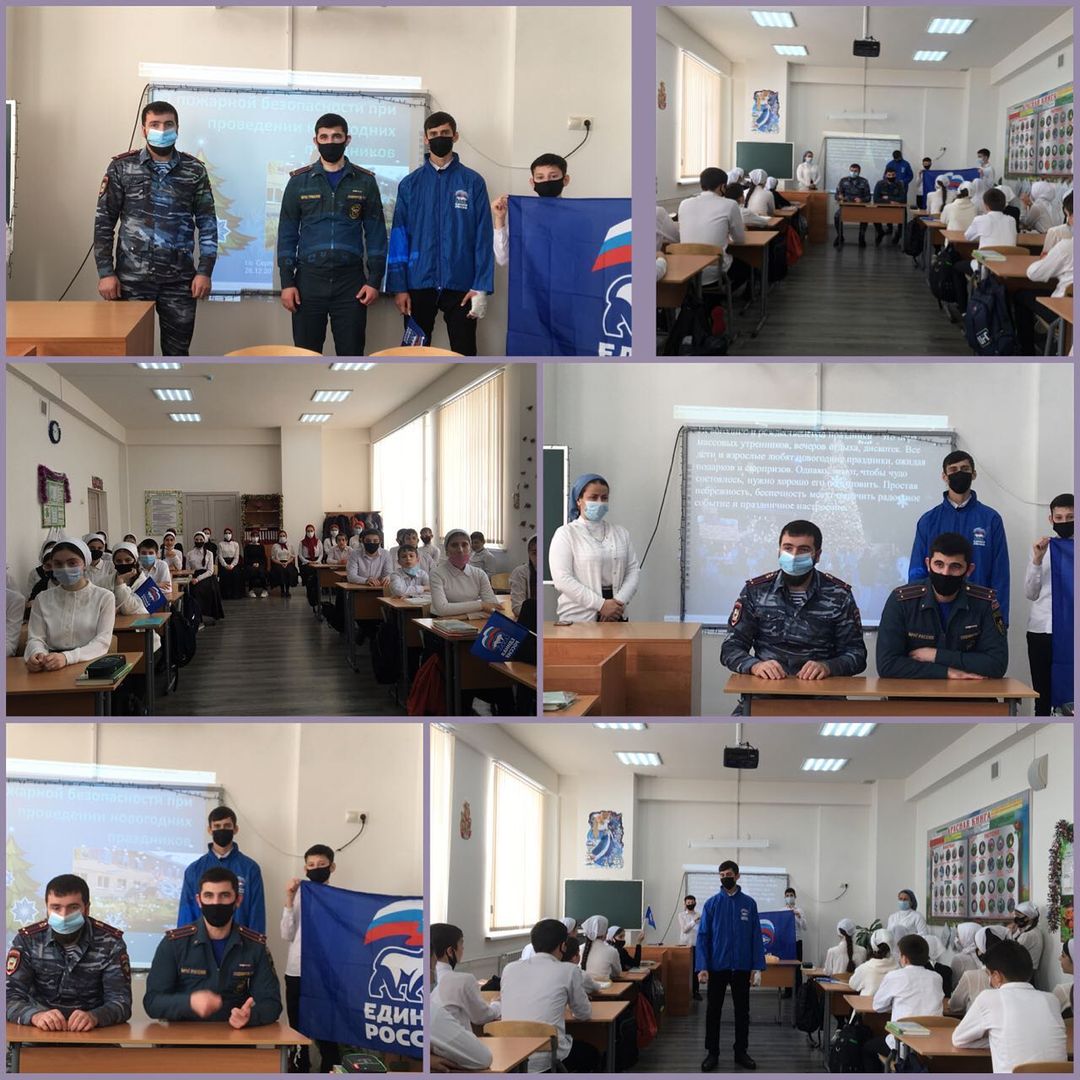 24.12.2020В МБОУ «Шелковская СОШ4 им.А-Х. Кадырова», с целью познакомить учащихся с историей возникновения и развития фейерверка;изучить правила безопасного использованияпиротихнических средств;познакомить с видами ожогов и правилами оказания первойпомощи при них;воспитывать осторожность, внимание, бережное отношениек своему здоровью и здоровью окружающих, социальным педагогом Алиевой Х.А. совместно с инспектором ПДН Елессовым Л.Л., сИнспектором ОНД и ПР по Шелковскому району Лейтенантом внутренней службы,Оздемировым Рахманом Имрановичом, с Единой Россией Хуцуевым Умаром Х. с учащимися 7-11х классов проведена беседа по правовому просвещению на тему: " Использование пиротехнических средств в новогодние праздники."