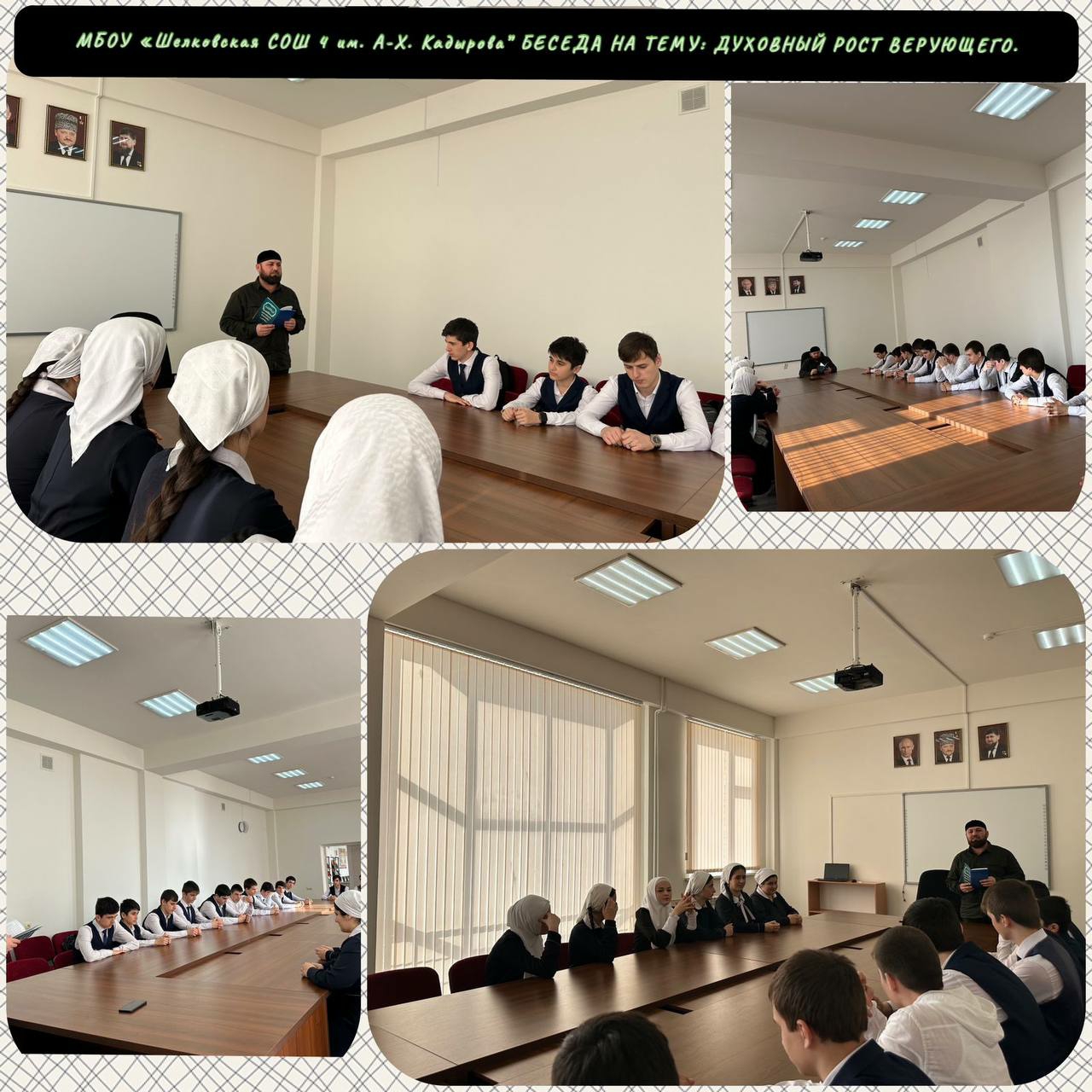 МБОУ «Шелковская СОШ 4 им. А-Х. Кадырова” педагогом ДНВиР проведена беседа на тему: «ДУХОВНЫЙ РОСТ ВЕРУЮЩЕГО.»