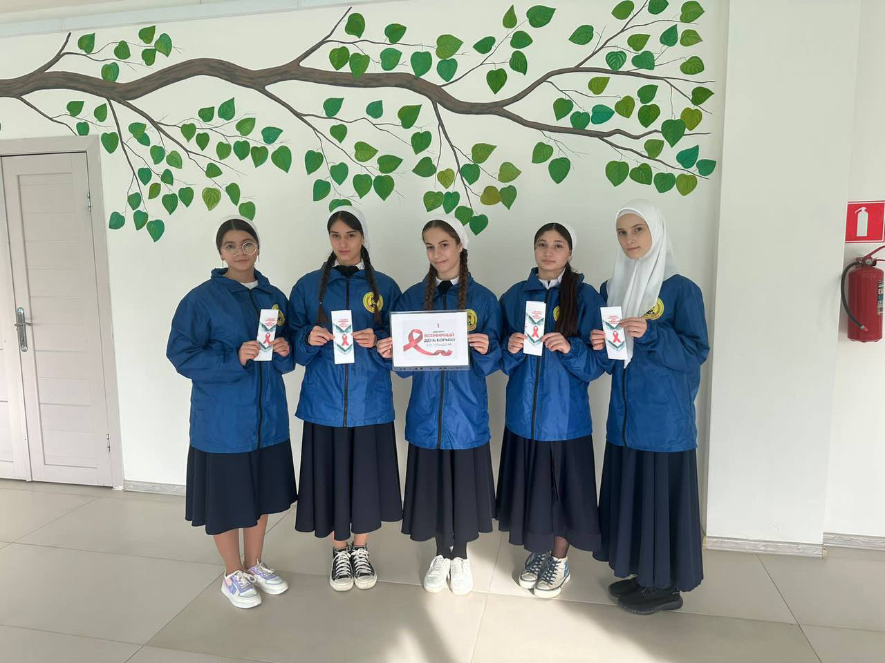 Сегодня в МБОУ «Шелковская СОШ №4 им. А.-Х. Кадырова» прошла «Красная лента»- акция, приуроченная ко Всемирному Дню борьбы со СПИДОМ. Цель акции-привлечь внимание школьников к проблеме СПИДА,проинформировать их о путях передачи ВИЧ,призвать к толерантному отношению к людям с ВИЧ.