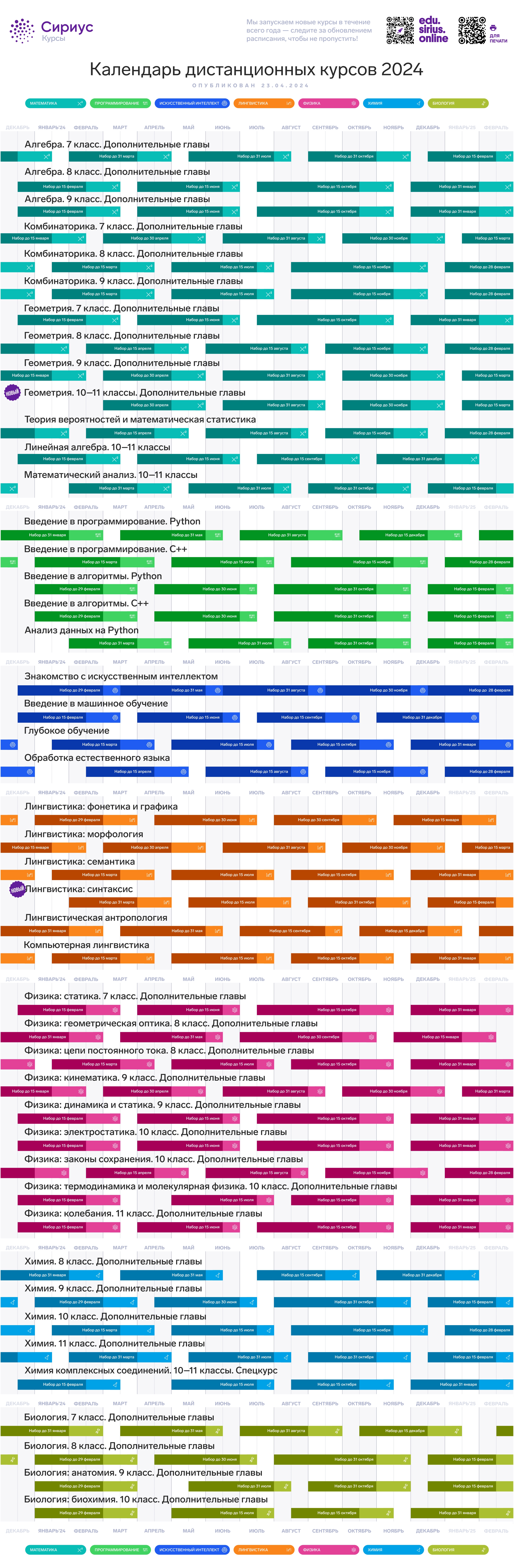 02.05.2024Онлайн-школа Сириус.Курсы опубликовала расписание курсов на 2024 год.