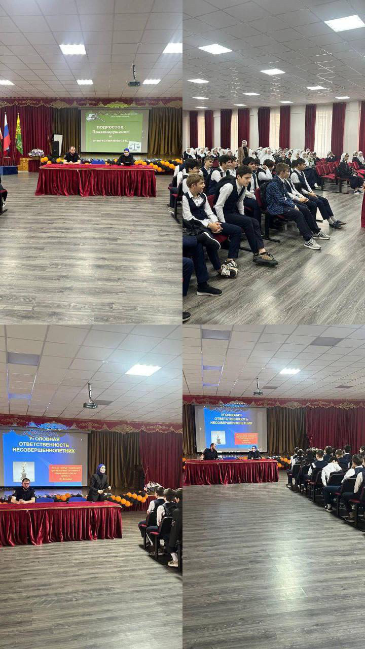 📌Педагог-психолог Бачаева З. А. и социальный педагог Минкаилова М. В. совместно с инспектором ПДН Солтаевым. Б. Ш. Провели беседы для обучающихся 7-11кл МБОУ «Шелковская СОШ №4 им. А.-Х. Кадырова» на тему:"Уголовная ответственность несовершеннолетних", а также на тему: «Правонарушения и ответственность за них"